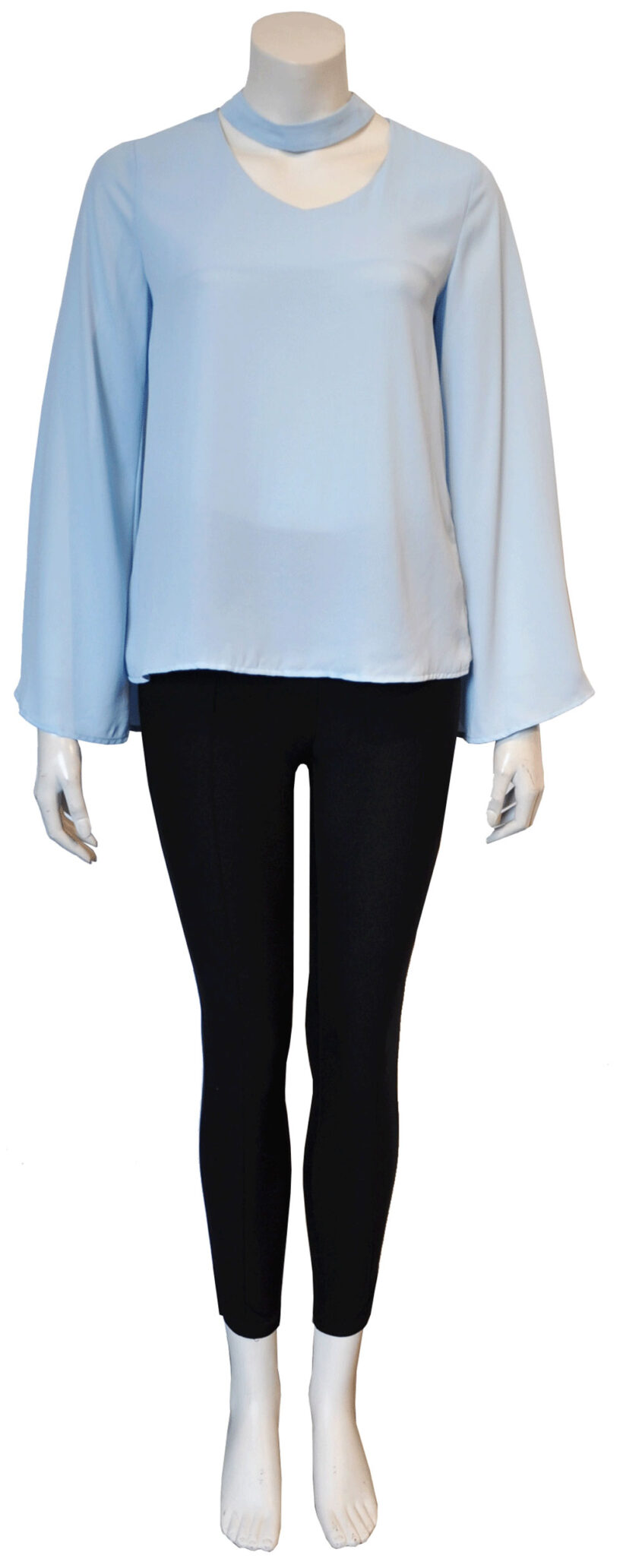 This top is perfect when you can’t figure out which accessory ties the whole ‘look’ together! The choker detail includes a snap button for comfortable wear and makes your accessory choice for you!