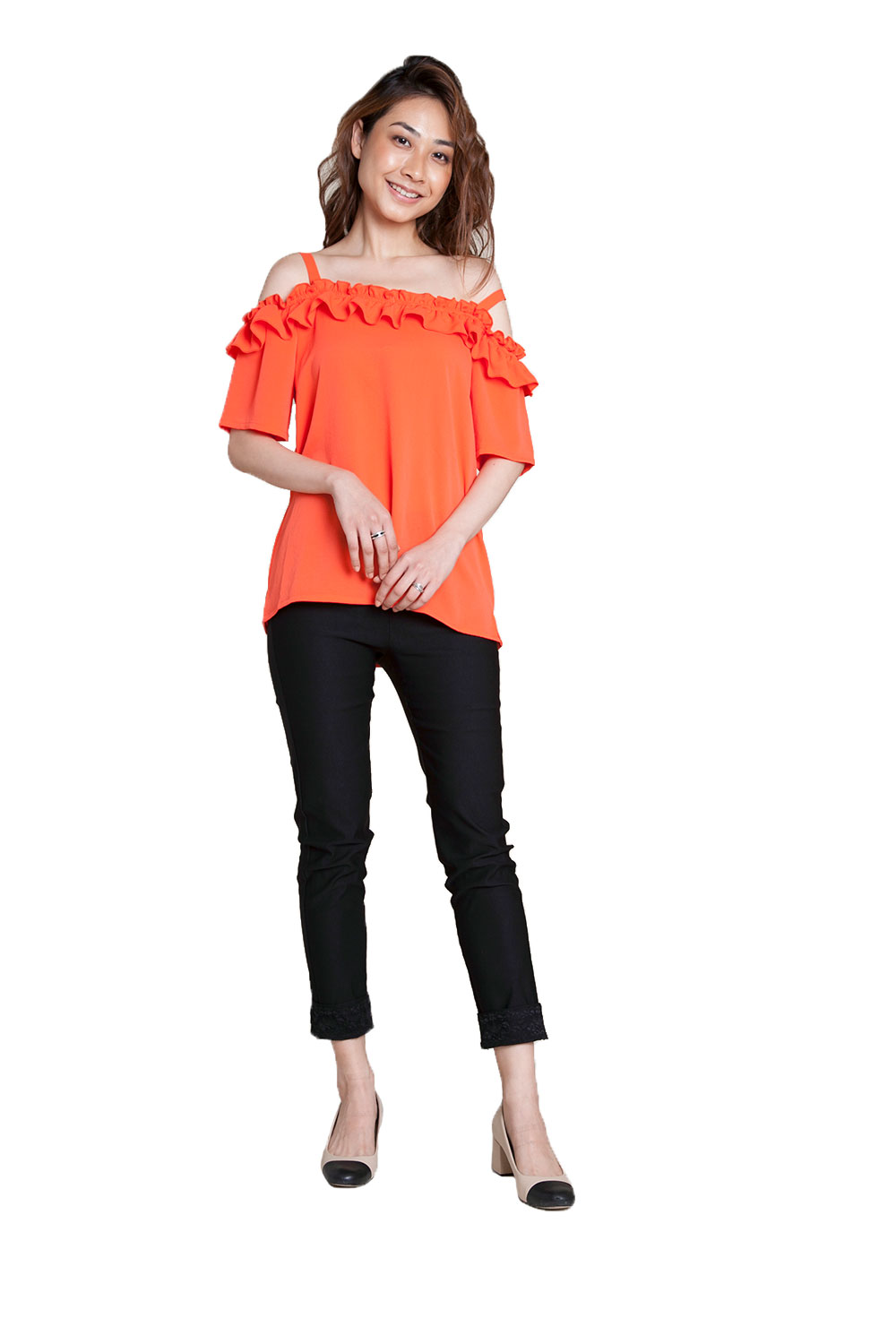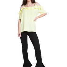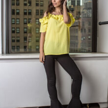 Bringing you all the summer vibes you’ll need in one top! The ruffle top and bright colors are perfect for all your summer style ideas.